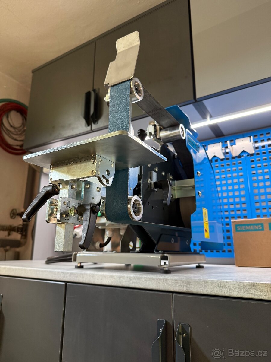 Prodám novou pásovou brusku, nový motor 1,5Kw siemens, 2800 ot/min, obvodová rychlost pásu je 23 m/s. Rozměr pásu 1500x50. Veškeré pohyblivé části nerezové, nerezový rozvaděč. Ostatní části ocel v kombinaci s hliníkem. Na gumových nožičkách. Nalakovaná + galvanický zinek. K brusce 2ks brusného pásu o různé zrnitosti. Viz foto. Cena 22000,-. Kontaktní kolo (průměr 200mm) +5000,-, rádiusové rolny +4000,-, rovinná magnetická bruska +10000,-. Standardně zapojeno na 230V (může být i 400V). Váha 45kg. K vidění ve Zruči nad Sázavou. Ihned k odběru. Možno brusku poslat na paletě +1500,-. Bruska prošla zkušebnou, má certifikaci CE, návod k použití, faktura.