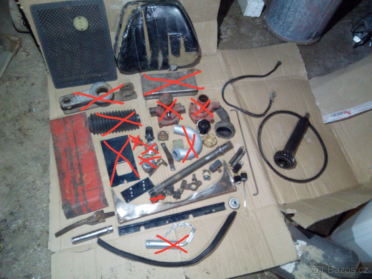 Dobrý den, prodám různé pozůstatky náhradních dílů na zetora 6911 atd... Pouze jen co je na fotkách mohu nabídnout, nic jiného nemám... Nějaké díly jsou i úplně nové... Uvedu pár prodávaných dílů viz foto: hřídel převodovky (jako nová, viz foto) , víčko chladiče, víčko vstřikovacího čerpadla, ruční pumpa, mřížka čelní kapota (plast, kov), jehlová ložiska do převodovky (nové), gufera a manžety různé co mi zbylo z g.o.(nové), silenbloky chladiče a nádrže atd...