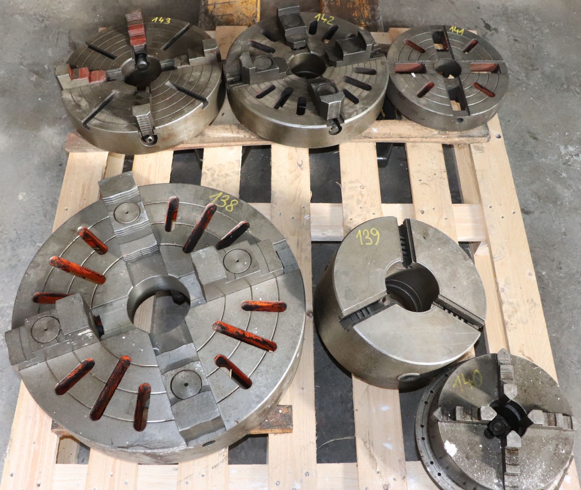 Nabízíme k prodeji lícní desky: č. 138 pr. 550 mm cena 25.000,-, č. 141 pr. 320 mm cena 6.000,- , č. 142,143 pr. 400 cena 14.000,- sklíčidlo: č. 139 pr. 315 mm cena 5.500,-, č. 140 pr. 250 mm cena 4000,-
