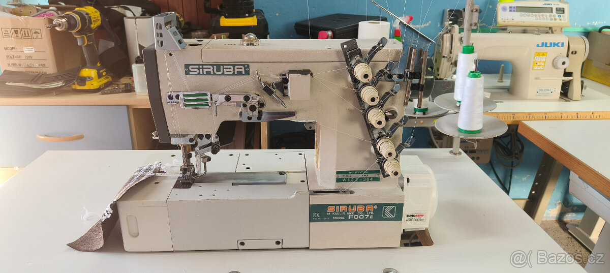 3-jehlový šicí stroj se spodním a vrchním krytím, rozpich mezi krajními jehlami 6,4mm, vyjmustím střední jehly možnost šít 2-jehlově, nenavlečením horní nitě lze šít jen se spodním krytím, vyjmutím krajních jehel lze šít dvojnitným řetízkovým stehem