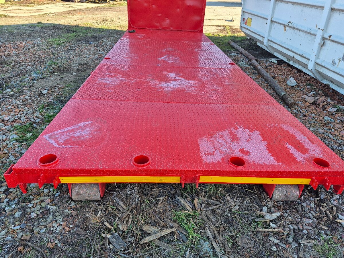 hákové plato + klanice pre prepravu dreva. Komplet opieskované a nastriekané. Protišmyková podlaha + posledný diel je úplne nový.Vhodný aj na prepravu dreva - po bokoch a dozadu sa dajú dať klanice. Dlžka ložnej plochy je 7m. Šírka ložnej plochy je 2,4m. V.háku 157cm. Reflexné nálepky vpredu a vzadu. Možnosť dovozu. Cena 3990€ + dohoda pri rýchlom jednaní. 97 730kč