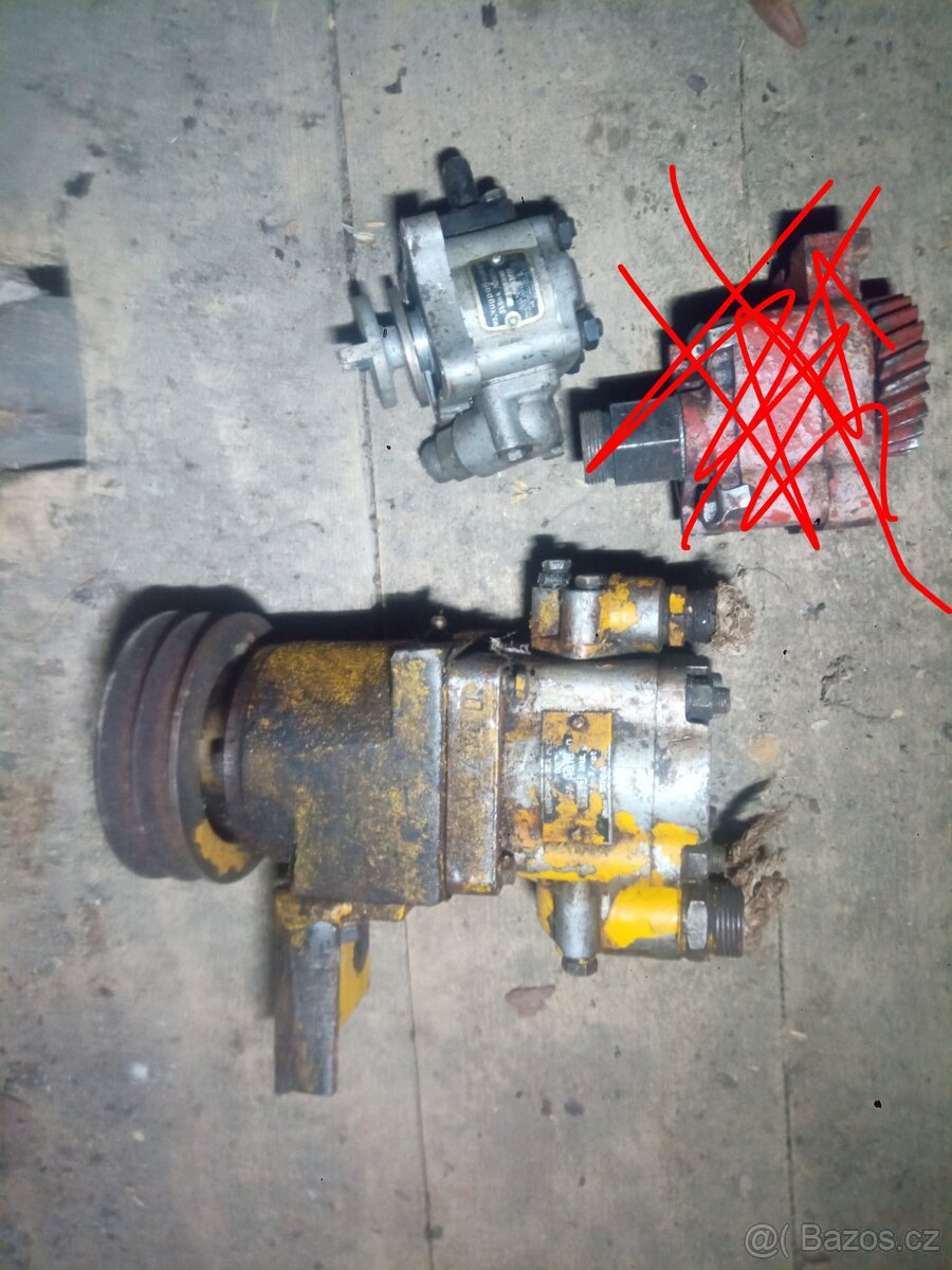 Prodám hydraulická čerpadla. Stav ani velikost nevím. Nějaké štítky jsou. Červené čerpadlo už není. V ceně vše co je na foto