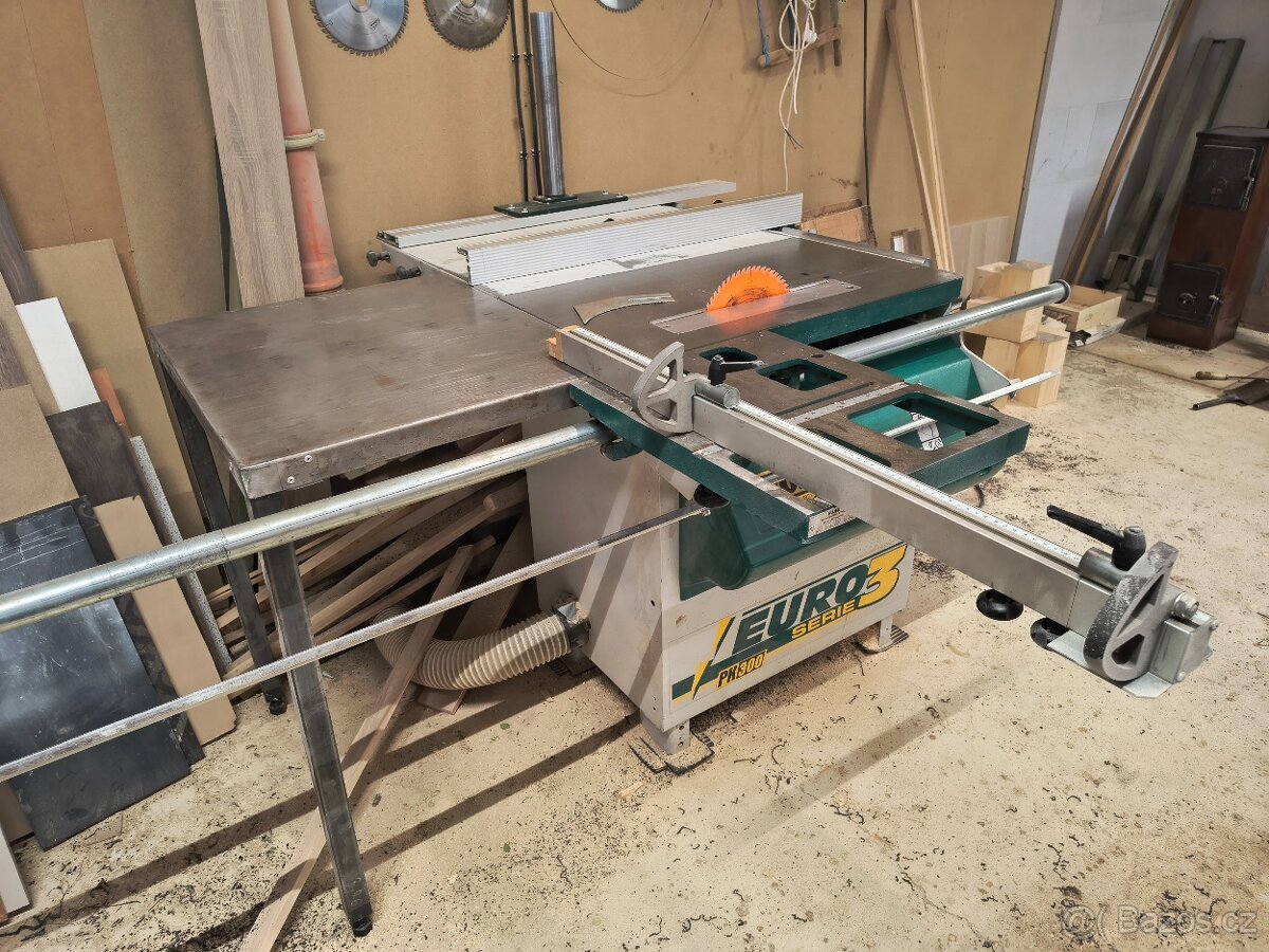 Prodám malou formátovací pilu s předřezem značky Rojek PK300 EURO 3. Pojezd vozíku 1,6m.
