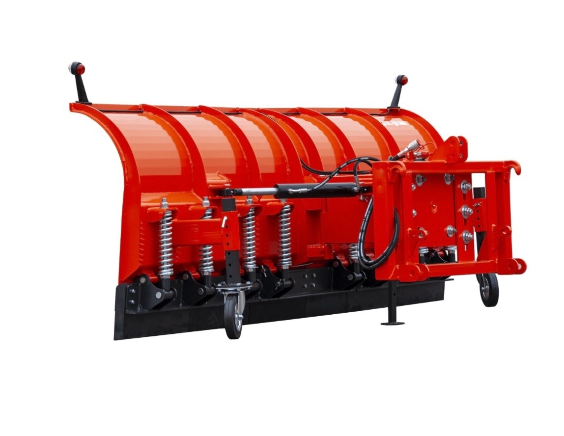 Odpružený břit chrání lopatu proti nárazům a zničení. Možnost dokoupit plazy nebo kolečka na kterých pluh potom jede a kopíruje terén.