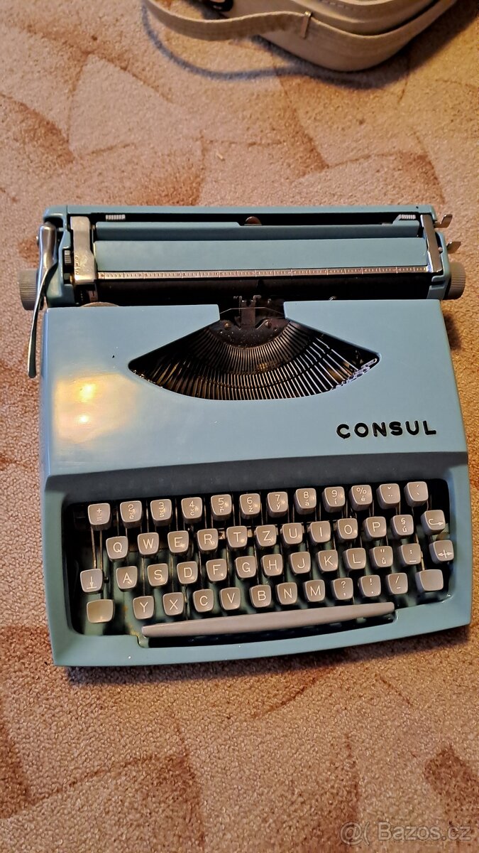 starožitný kufříkový psací stroj Consul, v dobrém stavu s kufříkem.