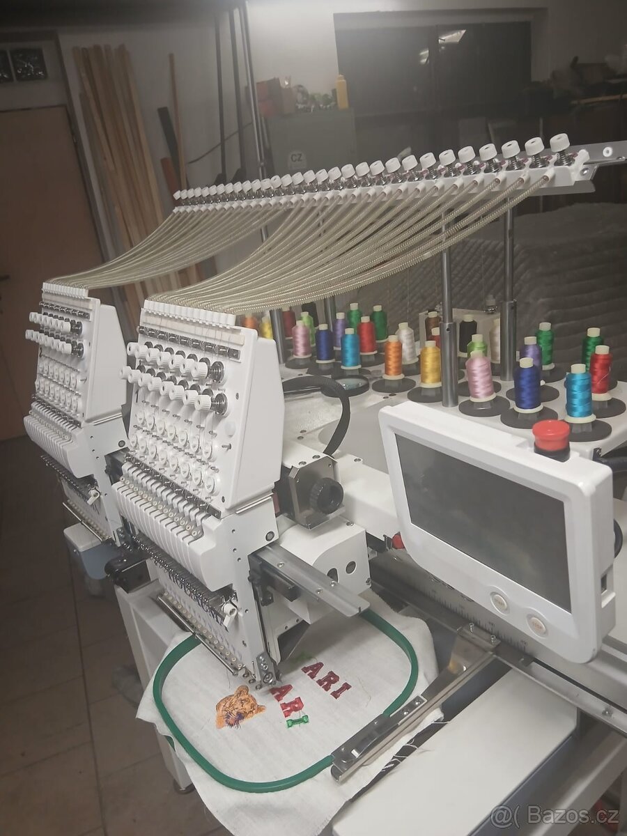 Dvě vyšívací hlavy,každá po 15 barvách. Značka Holiauma. Manuál k dispozici. druhů rámečku na ruzné elikosti. Dají se vyšívat čepice.