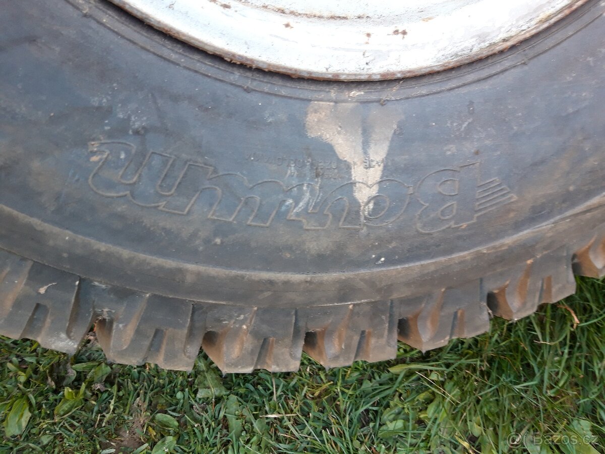 Prodám nafoukané kolo na hákový nosič kontejneru NKT-10 a vlek 9 tun Agro. Kolo sloužilo jako rezerva. Nafoukané, disk nepoškozený. Cena 7500Kč.