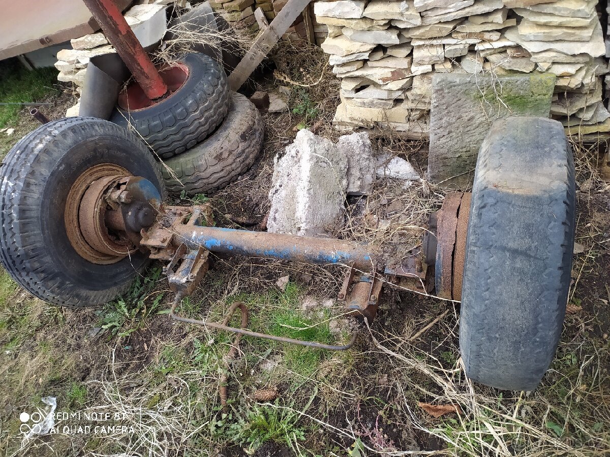 Prodám mohutnou nápravu s koly 8.25-15 stejene jako 5t nechám k tomu 3 kola jedno sjete dvě slušná na střed kol 180 naloženi není problém možnost dopravy vhodné na stavbu vyvažečky, sklopky ,kary, vleku,navesu za traktor Zetor atd....