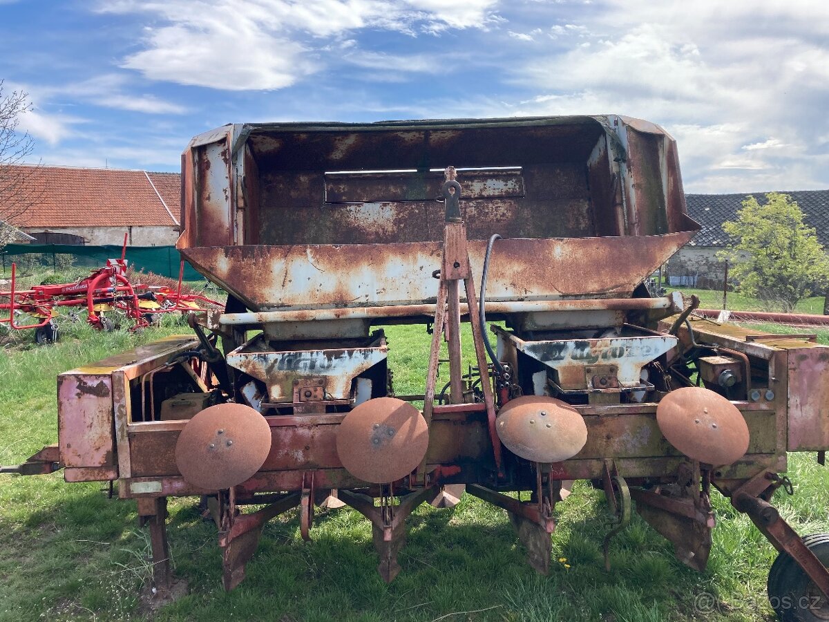 Prodám čtyřřádkový plně funkční sazeč brambor za 15000,- Kč
