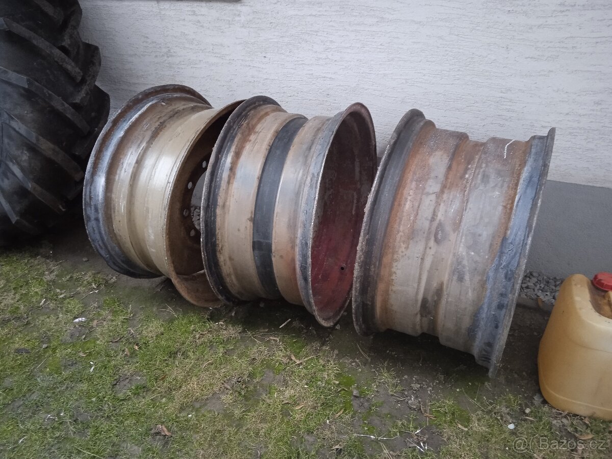 Prodám 3x disky na ŠT 180 nebo LKT-80. Na pneu 30". Středová díra 28cm, střed šroubů 33cm, 10 děr. (10/335/281)