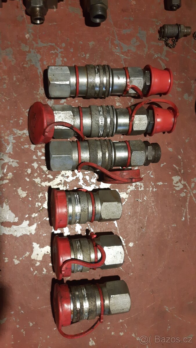 Prodám snad použité hydraulické komponenty (spojky, přípojky, rozvaděče atd.) viz obrázky.