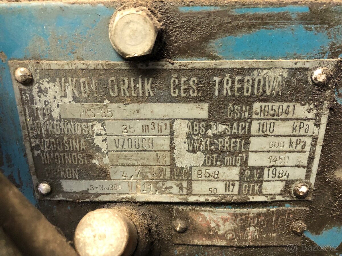 Kompresor Orlík - [20.3. 2026]Prodám plně funkční kompresor Orlík. Údaje viz. štítek na foto. Cena 3000,-. Dohoda jistá