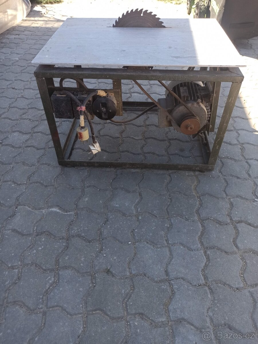 Kombinace cirkularky a hoblovky. Cirkularka je výrobek MEZ Mohelnice, hoblovka Narex. 380V na 4 kolíky, prodlužka v ceně. Průměr kotouče 25cm. Konstrukce obsahuje dvě další zásuvky na 220V.