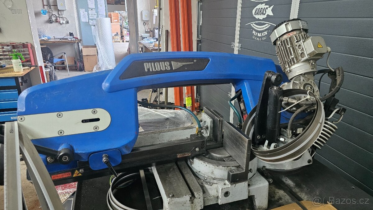 Použitá pásová pila na kov, podobná jako Bomar. Mám i originální válečkové dopravníky 3m před řez, 2m s odměřováním za řez, včetně mezikusů pro řezání pod úhly.