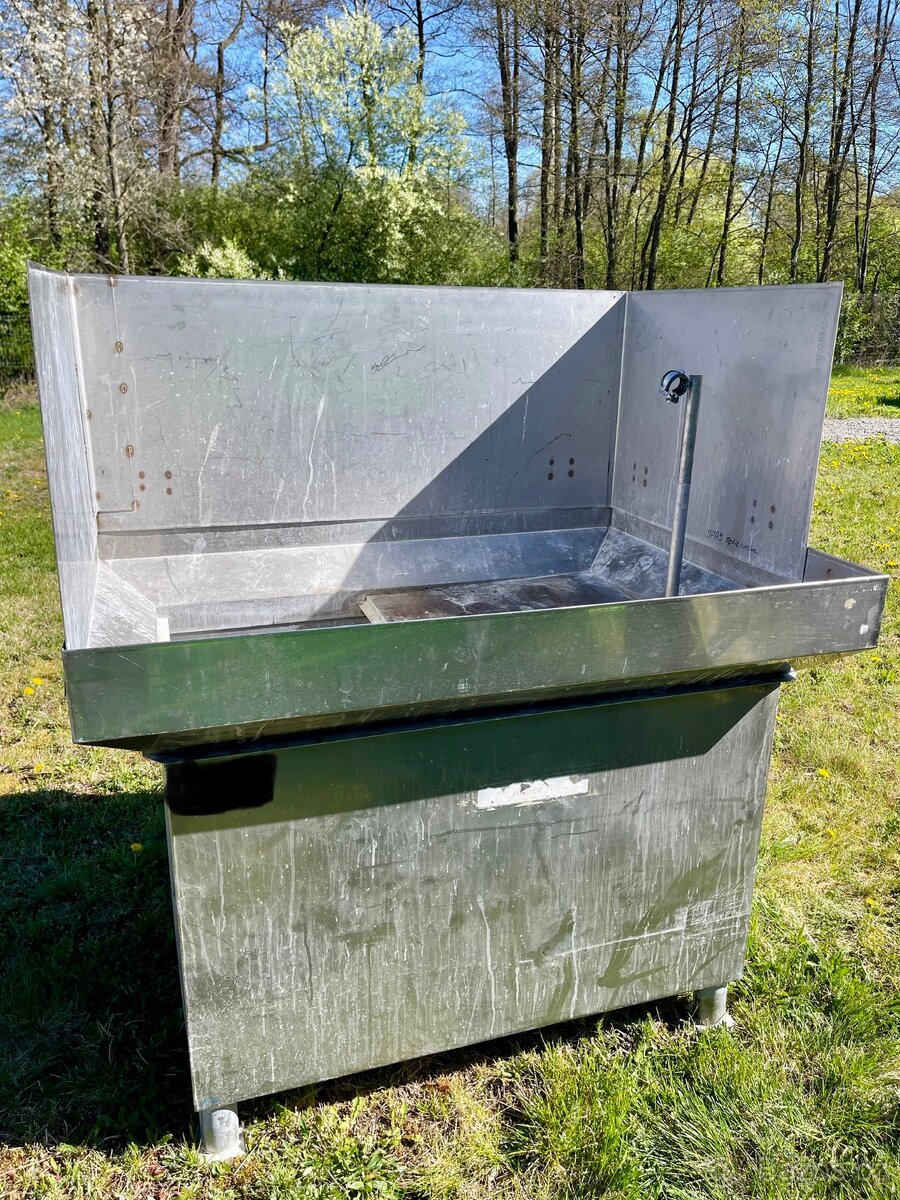 nerezová vana/dřez - REZERVACE - [22.4. 2026]Prodám nerezovou vanu/dřez s vypouštěcím kohoutem. Police ve spodní části. Objem vany 140 litrů. Vyzvednutí po domluvě v obci Koleč (okr. Kladno).