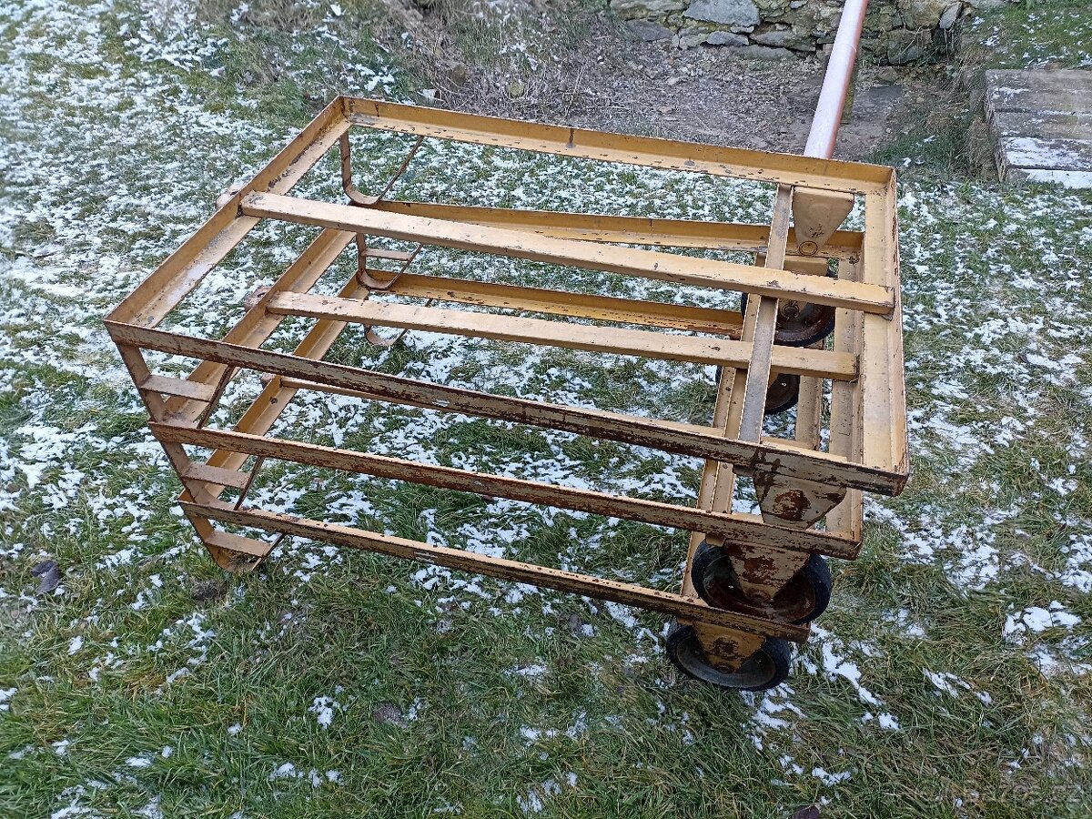 Prodám dílenské vozíky. Do dílny, truhlárny, na odložení materiálu, skladování, převážení. Vysoká nosnost, možno použít jako stojan pod palety nebo pod IBC nádrže. Rozměr na EUR paletu - 83 x 120 cm, dva kusy kompletní, třetí bez koleček. Cena 1500 za všechny. Možno jednotlivě: s kolečky 700 Kč/ks, bez kol 400 Kč.