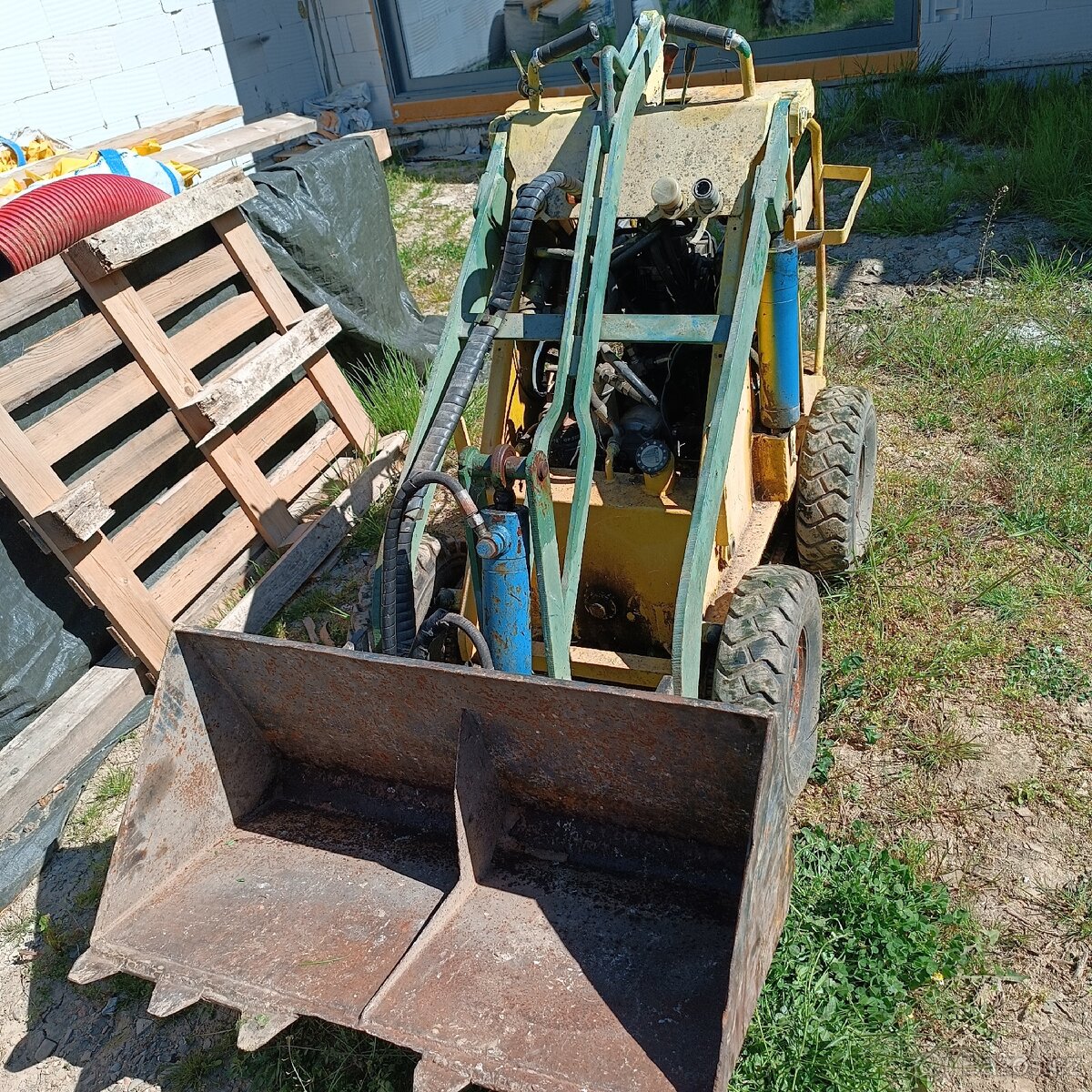 Prodám mininakladač s naftovym motorem - jednoválec lombardini 6 LD 400, šířka lopaty 95cm - projede 100cm otvorem, vaha cca 500 kg