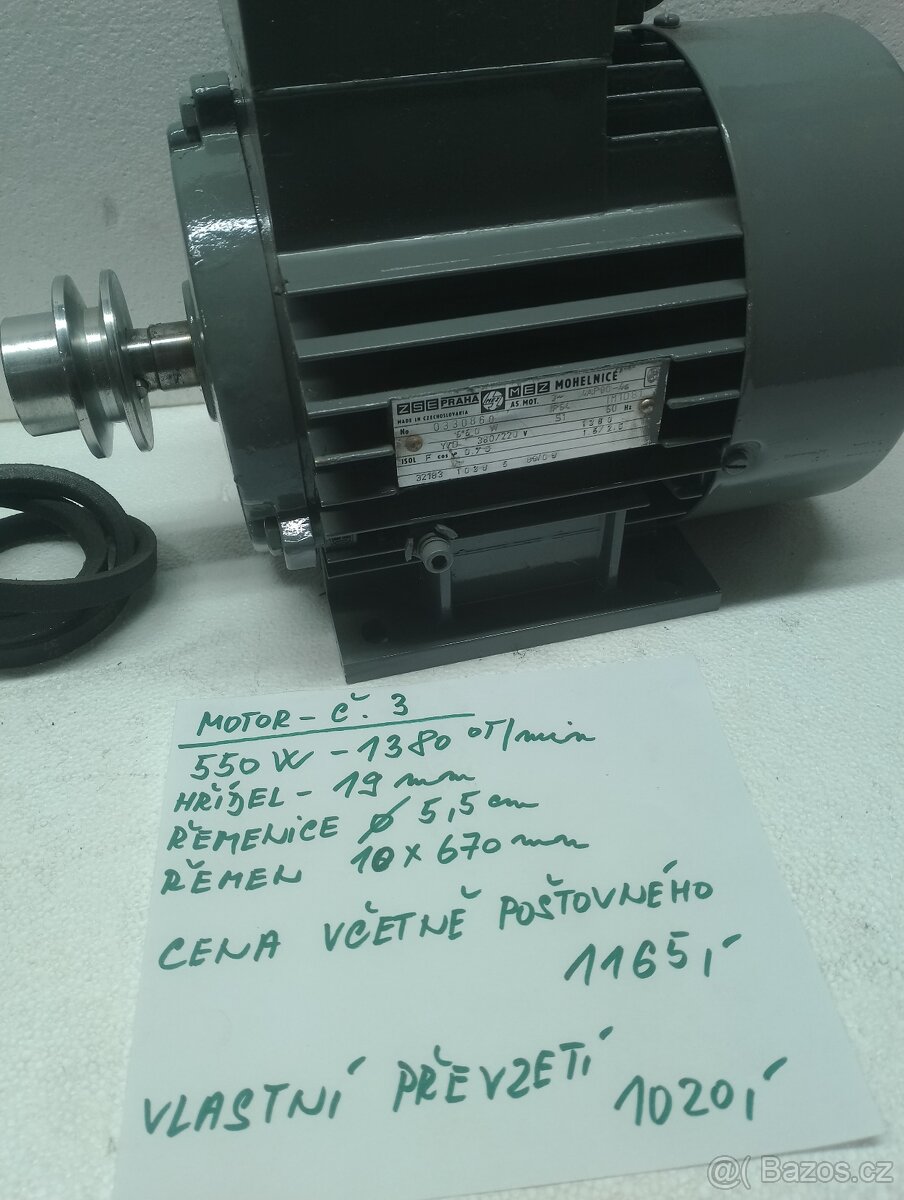 Prodám elektromotor 550 W.Jede krásně, odzkoušení je samozřejmostí.Cena včetně poštovného 1165 Kč.Při vlastním převzetí 1020 Kč.Platí do smazání.Tel:702687532.