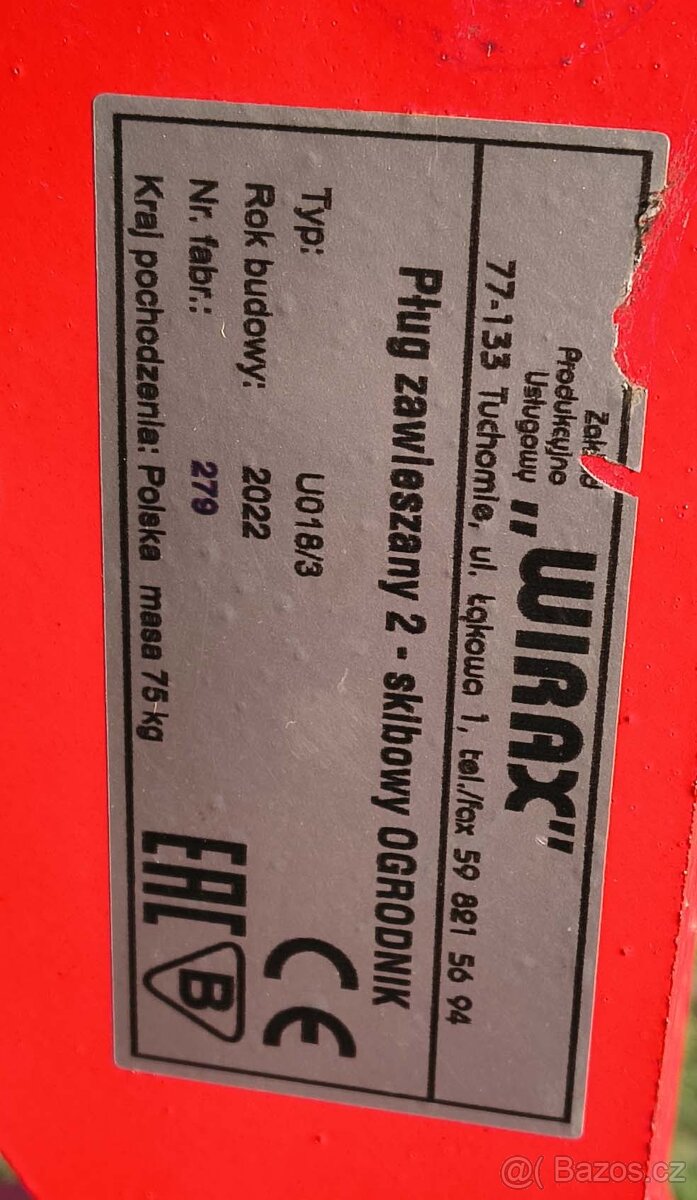 Prodám dvouradličný pluh WIRAX. Jedná se o téměř nový kus pouze 1x vyzkoušený.Vhodný pro malotraktor například Iseki, Kubota apod.