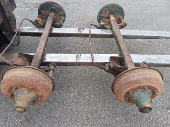 Náprava na vlek - [26.4. 2026]Prodám nápravu ze sběracího vozu vhodnou na káru za traktor. Celková délka 250cm, mezi bubny 194cm.