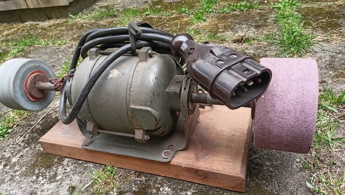 Stolní bruska na dřevěné desce. Dlouhodobě uskladněná, byla funkční. Slušný stav viz foto. Kotouče navíc. Třeba někdo ocení. Cena dohodou.